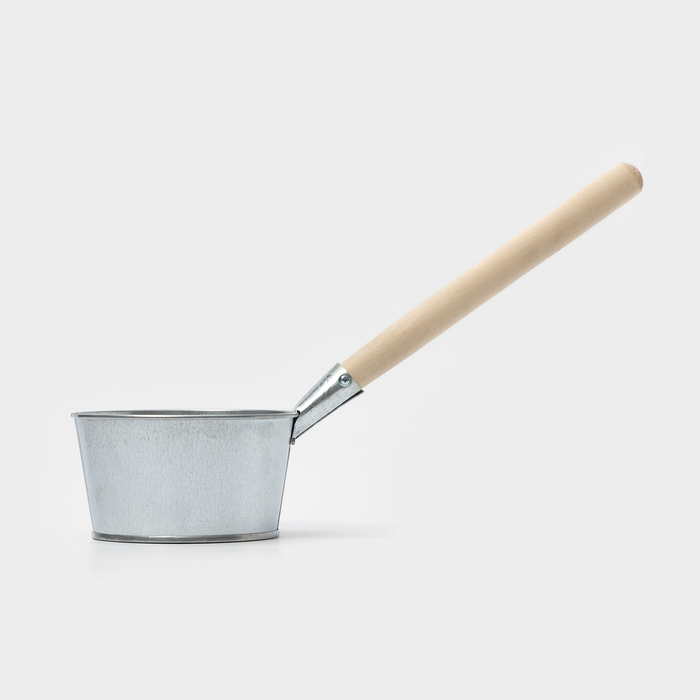 Оцинкованный ковш прекрасно впишется в оформление бани, где присутствует и дерево и сталь. Изготовлен из оцинкованной стали. Ему не страшен постоянный контакт с холодной и горячей водой.