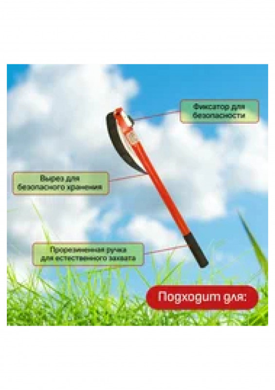 Серп предназначен для скашивания травы на дачном участке.