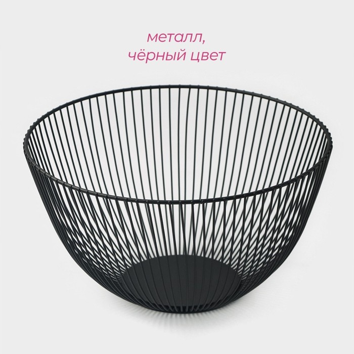 Стильная ваза для фруктов станет идеальным дополнением любого интерьера. Корзинка выполнена из окрашенного металла, что защищает её от коррозии. Благодаря оригинальному дизайну, фруктовница станет украшением вашей кухни или праздничного стола. Удобная конструкция позволит дольше сохранить фрукты свежими.