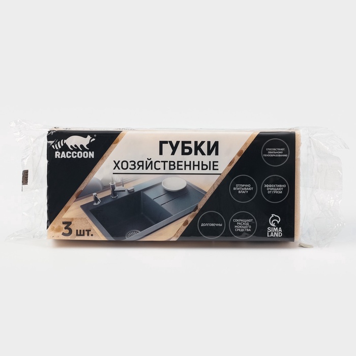 Набор губок для мытья посуды 3шт,9х6,5х3,5 см,крупнористый поролон, Raccoon "Лофт"