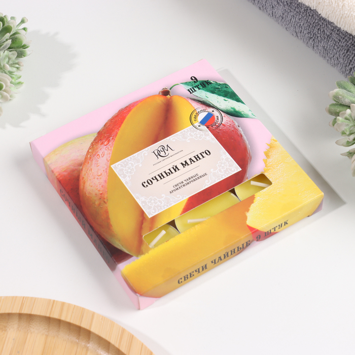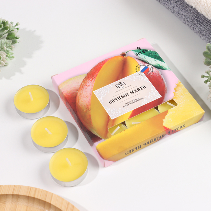 Набор чайных свечей ароматизированных , 10гр, 9штук "Сочный манго"