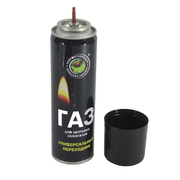 Предназначен для портативных газовых приборов (горелок, плит, ламп и т.д.). Газ для заправки зажигалок представляет собой очищенный сжиженный углеводородный газ. Предназначен для заправки газовых зажигалок.