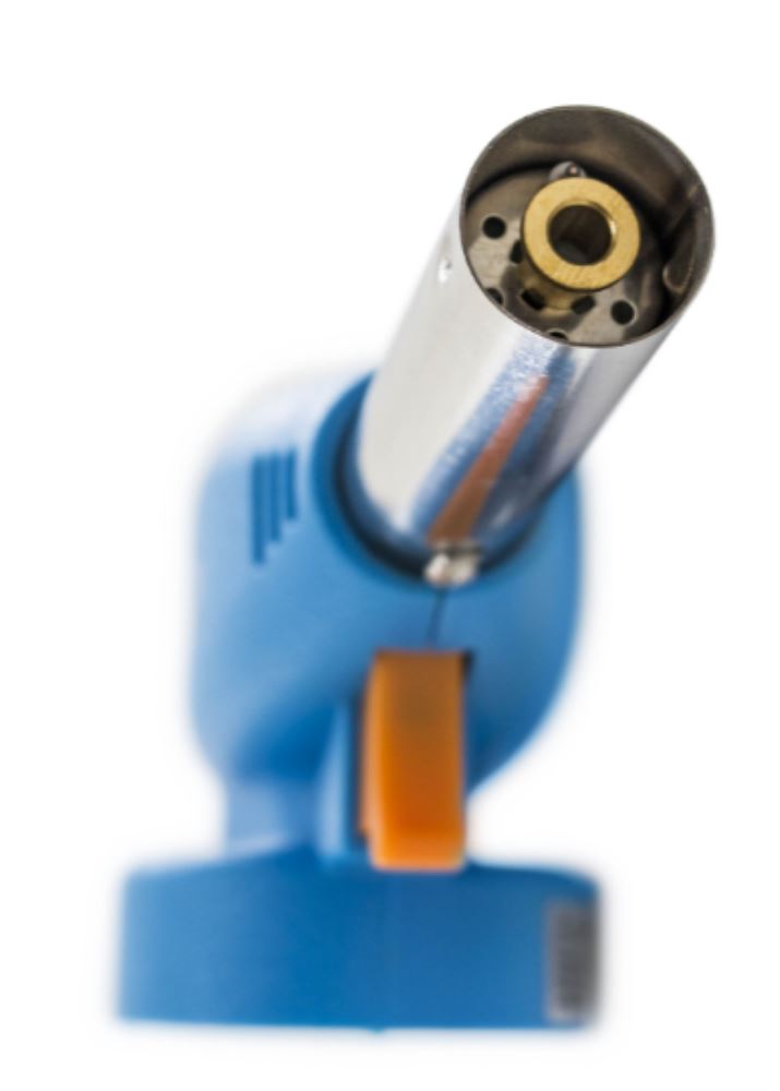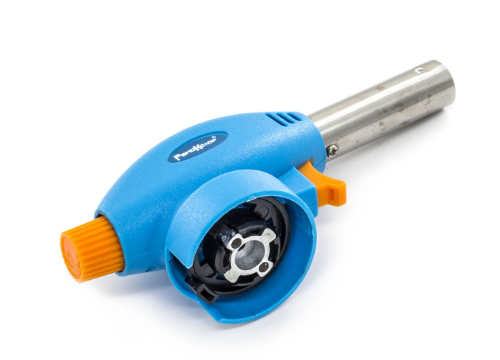 Газовая горелка-насадка с пьезоподжигом, встроенным в курок горелки. Работает портативная горелка от одноразового газового баллона. Горелка имеет легкий вес и произведена их твердых сплавов.