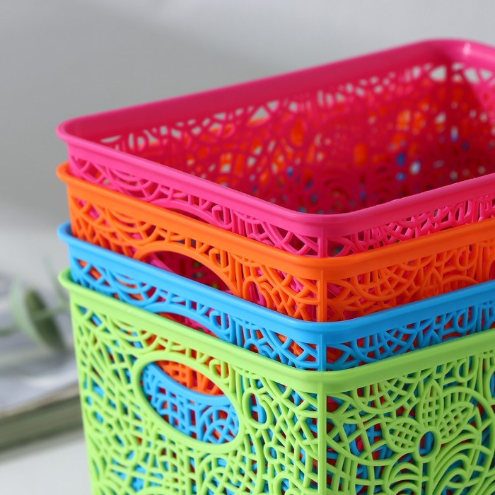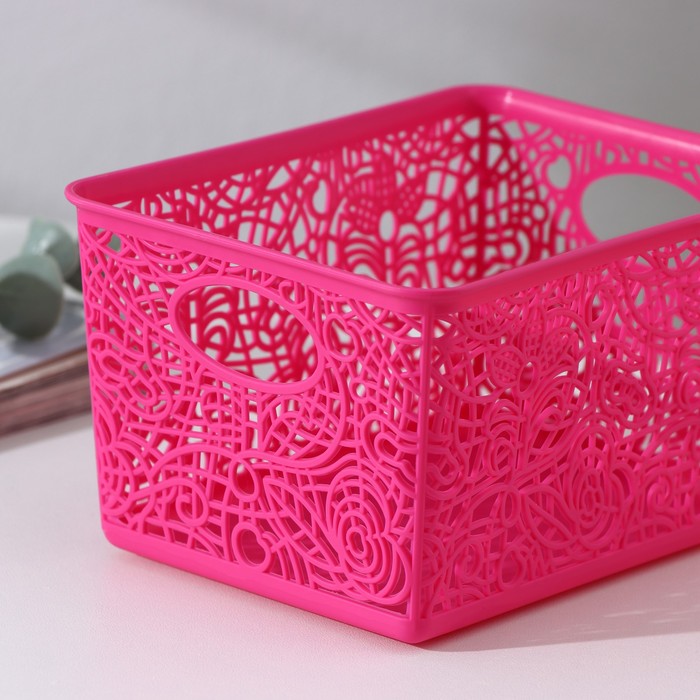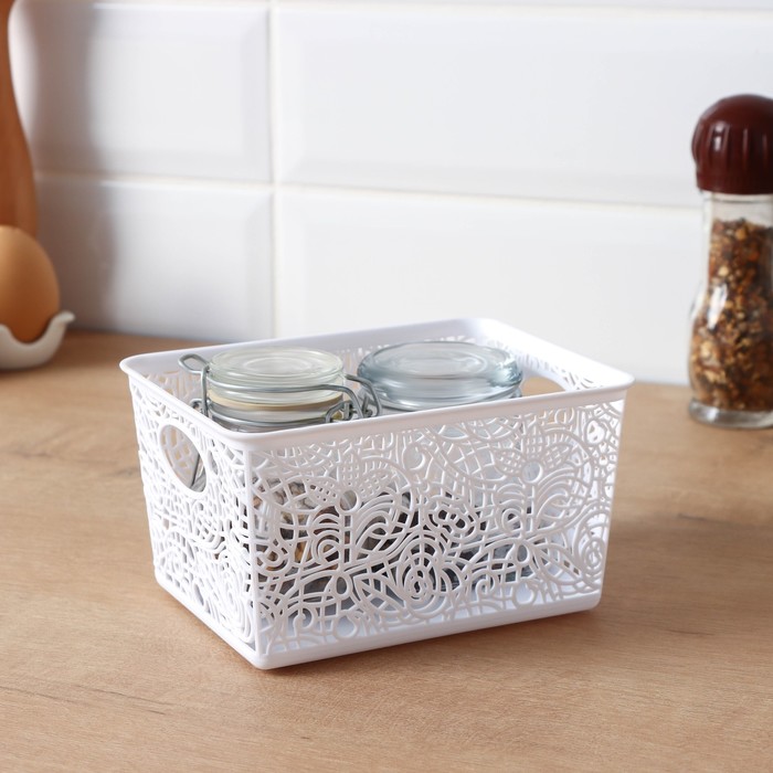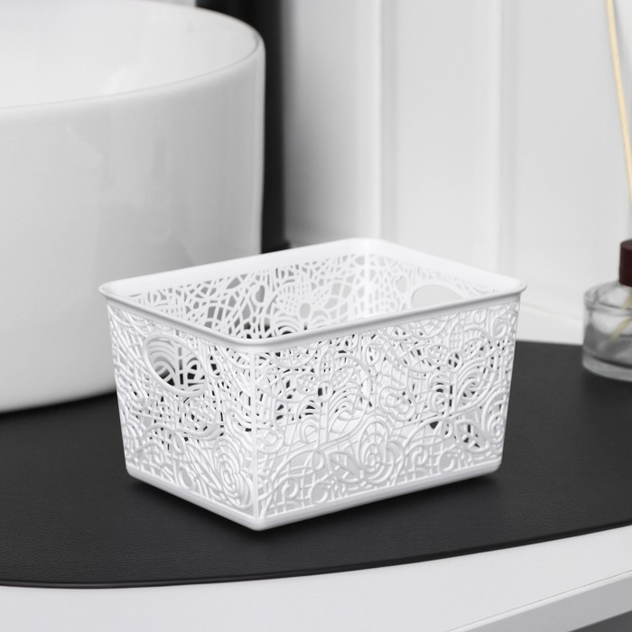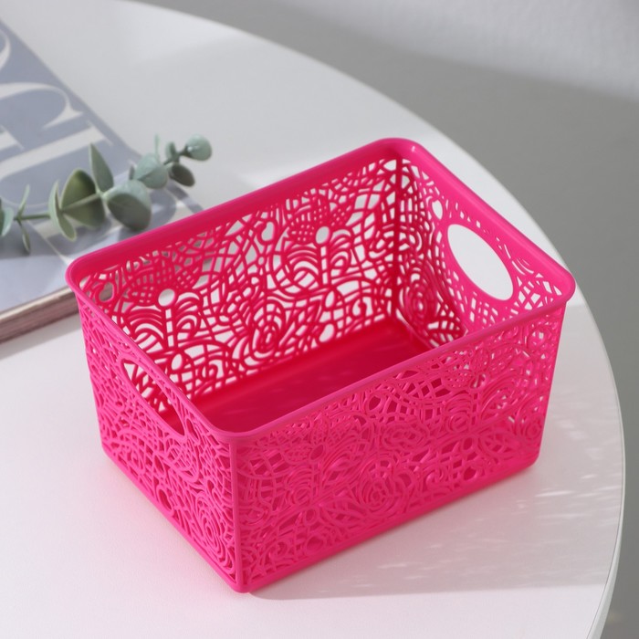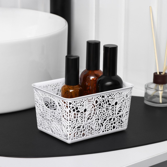 Корзинка пластиковая для хранения 14х10х8см, цвет микс "Кружевные цветы"