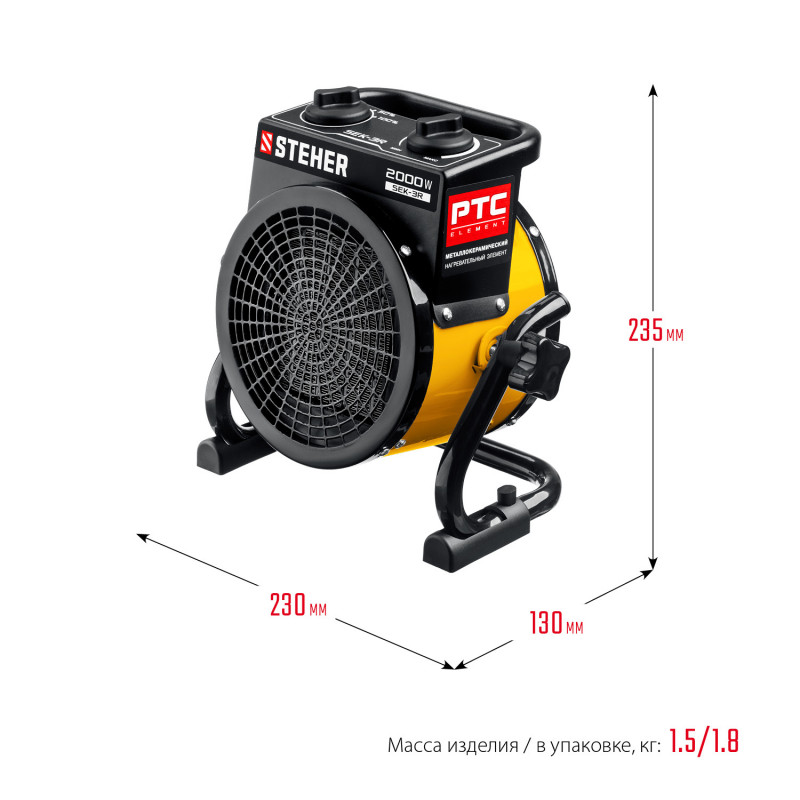 Электрические тепловые пушки STEHER серии SEK – компактные пушки в круглом корпусе для обогрева небольших помещений. Благодаря небольшим размерам тепловую пушку легко переносить и хранить. Устройства оснащены долговечным металлокерамическим нагревательный элементом,обеспечивающий быстрый равномерный нагрев, экономное потребление электроэнеергии и не сушит воздух. Механический терморегулятор поддерживает нужную температуру нагрева.За счет большой площади теплообмена и небольшой температуры нагрева элемента, воздух быстро прогревается. Изделие можно оставлять на долгое время и не бояться за сохранность помещения, так как конструктивные меры безопаснос