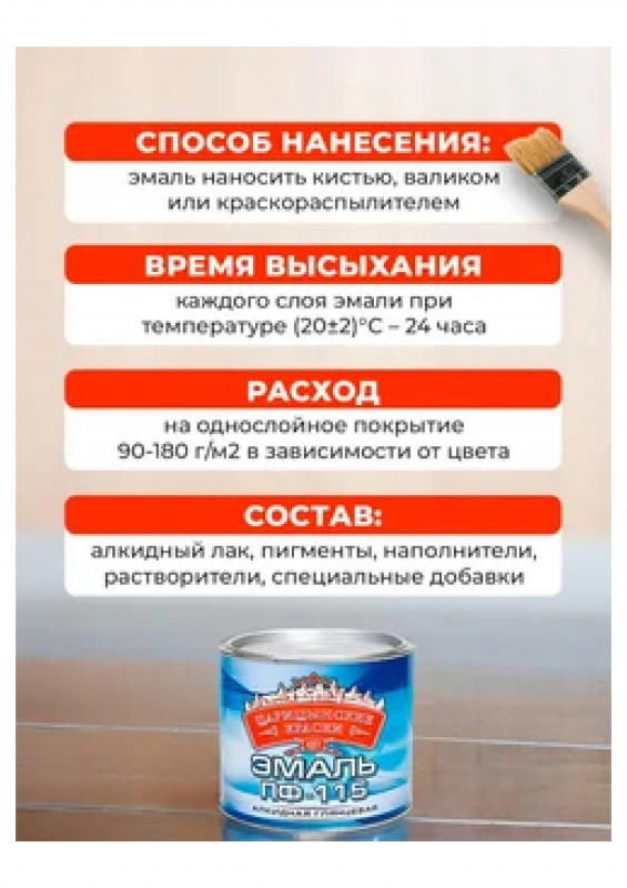 для окраски металлических, деревянных и других поверхностей, подвергающихся атмосферным воздействиям, и для окраски внутри помещений (кроме окраски пола).
