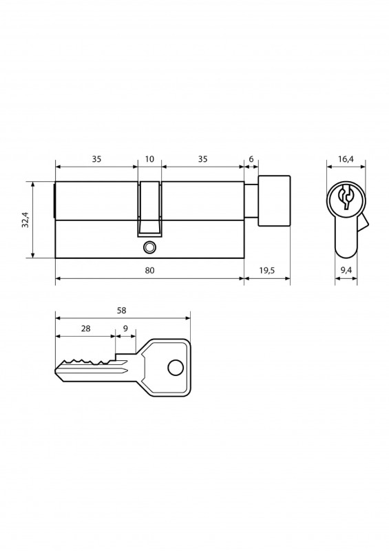 Механизм цилиндровый Z.I.80-5K ВР 35х10х35 кл/кл Стандарт
