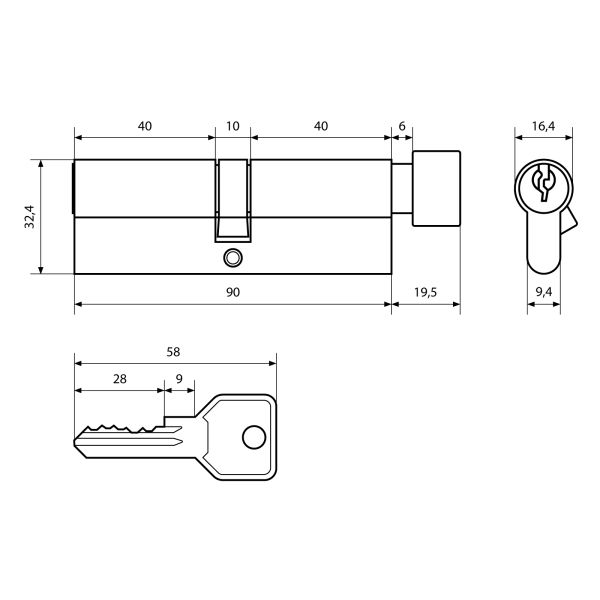 Механизм цилиндровый Z.I.90В-5K CP 40х10х40 кл/верт Стандарт
