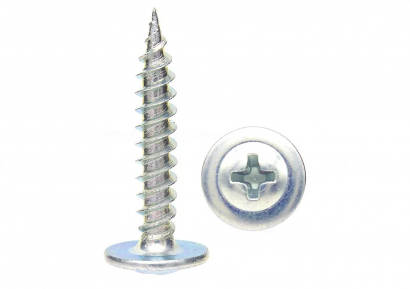 саморез имеет резьбу с мелким шагом, наконечник со способностью просверливания до 2 мм. Наконечник может быть выполнен в двух вариантах: острый и сверловидный. Полусферическая головка "Phillips №2" (Ph2), с пресс-шайбой. Под головкой имеются насечки, препятствующие самопроизвольному отворачиванию. саморез с напрессованной шайбой применяется для монтажных работ, соединения элементов листового металла, тонколистовой стали.