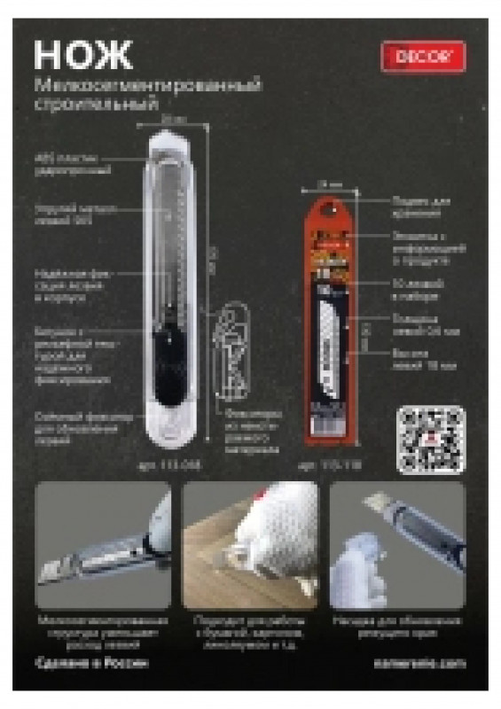 Нож строительный 18мм 0,6мм DECOR