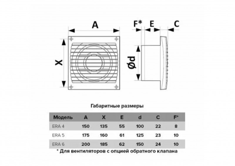 Вентилятор ERA 4S осевой вытяжной с антимоскитной сеткой D100